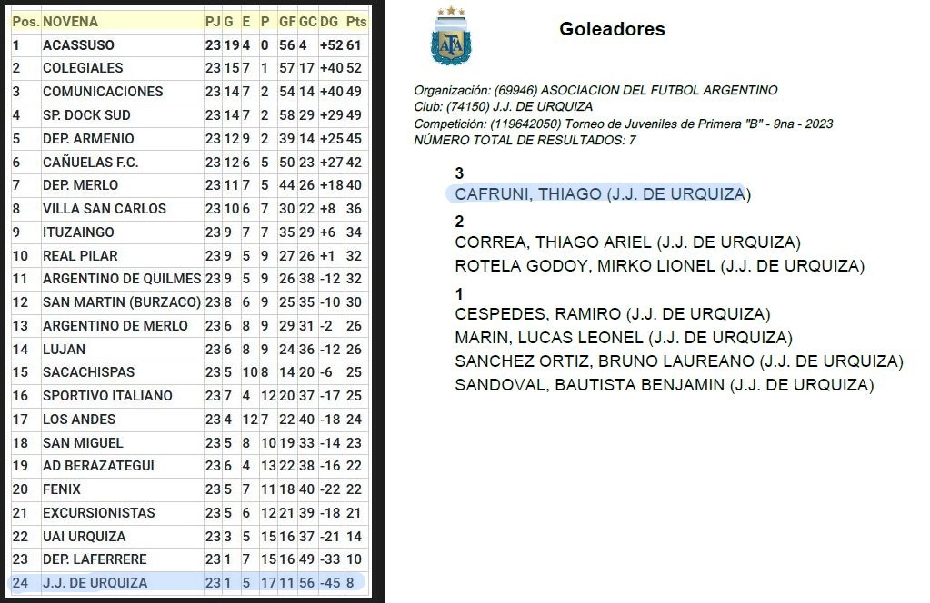 En esta nota sumamos todas las tablas finales de Posiciones y los goleadores de todas las categorías de inferiores que disputaron los torneos de Juveniles B 2023